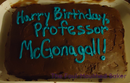 Today is Harry Potter’s Name Day, but he’s dead, right? Instead, I will tell you about the time I was tasked with making a chocolate birthday cake for Professor McGonagall.