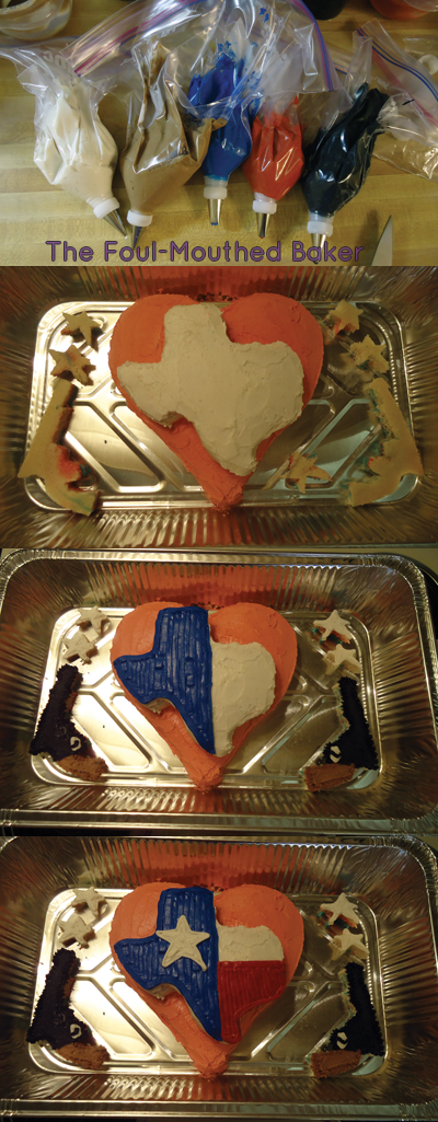 I’ve been back in the best country in the world this summer: Texas. I thought I should share a Tejas (Spanish for ‘Texas’, dumbass) cake I made for a friend, since my summer in Texas is almost at an end.