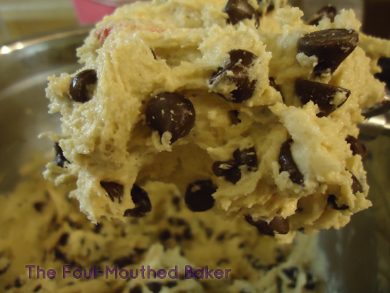 Now, mix in the salt and baking soda. Then, slowly mix in the flour. Don’t throw a fuckton of flour in the bowl at once. You’ll make a huge mess, dickhead. Remember to constantly  scrape the side of the bowl to fully mix all the ingredients, which should take about 5 minutes.